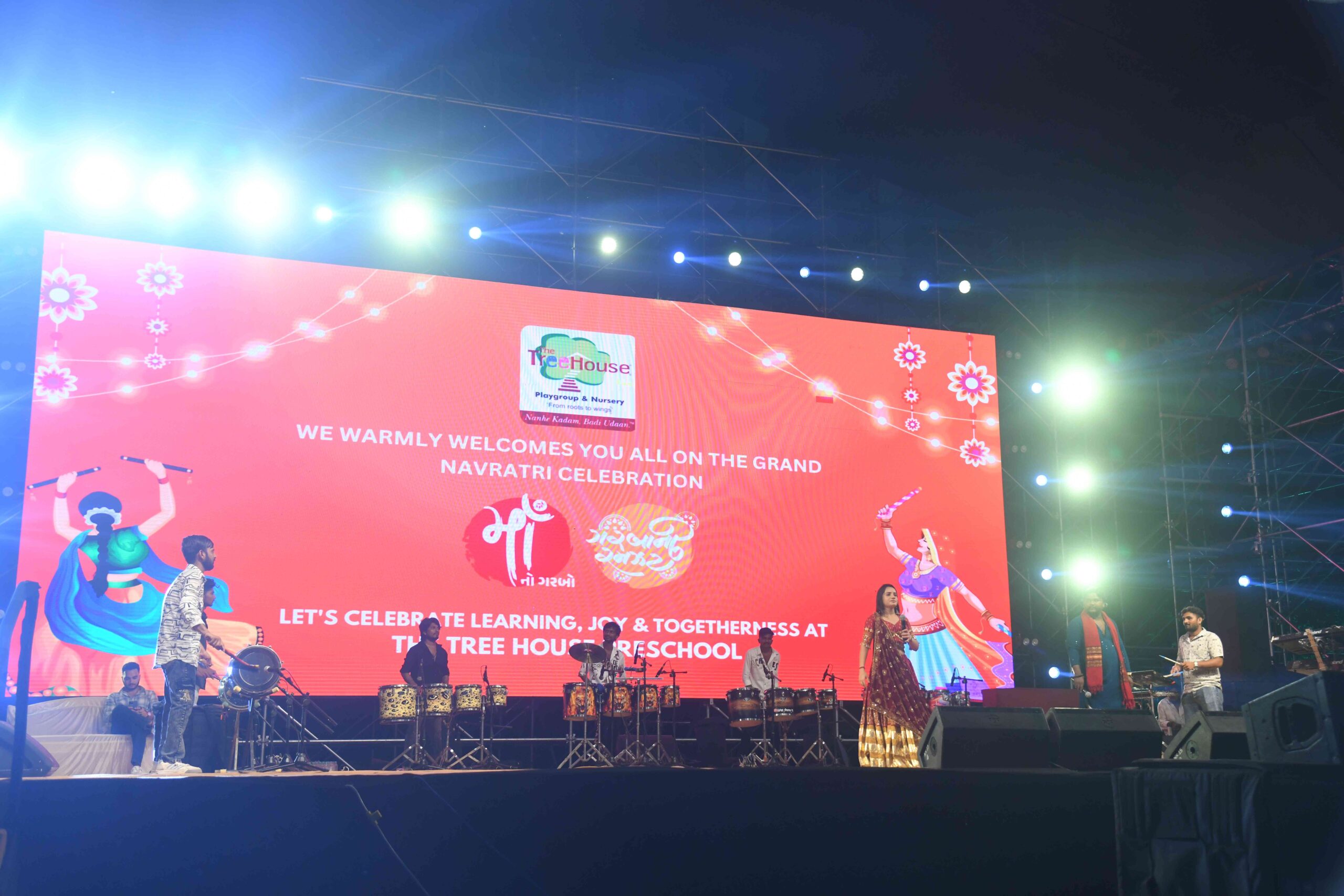 The Navratri celebration at The Tree House was filled with vibrant colors, music, and joy as children dressed in traditional attire and enjoyed the beats of garba. They learned the importance of culture and tradition while dancing, singing, and celebrating together with friends. The festive spirit created a lively atmosphere that brought smiles to every face.